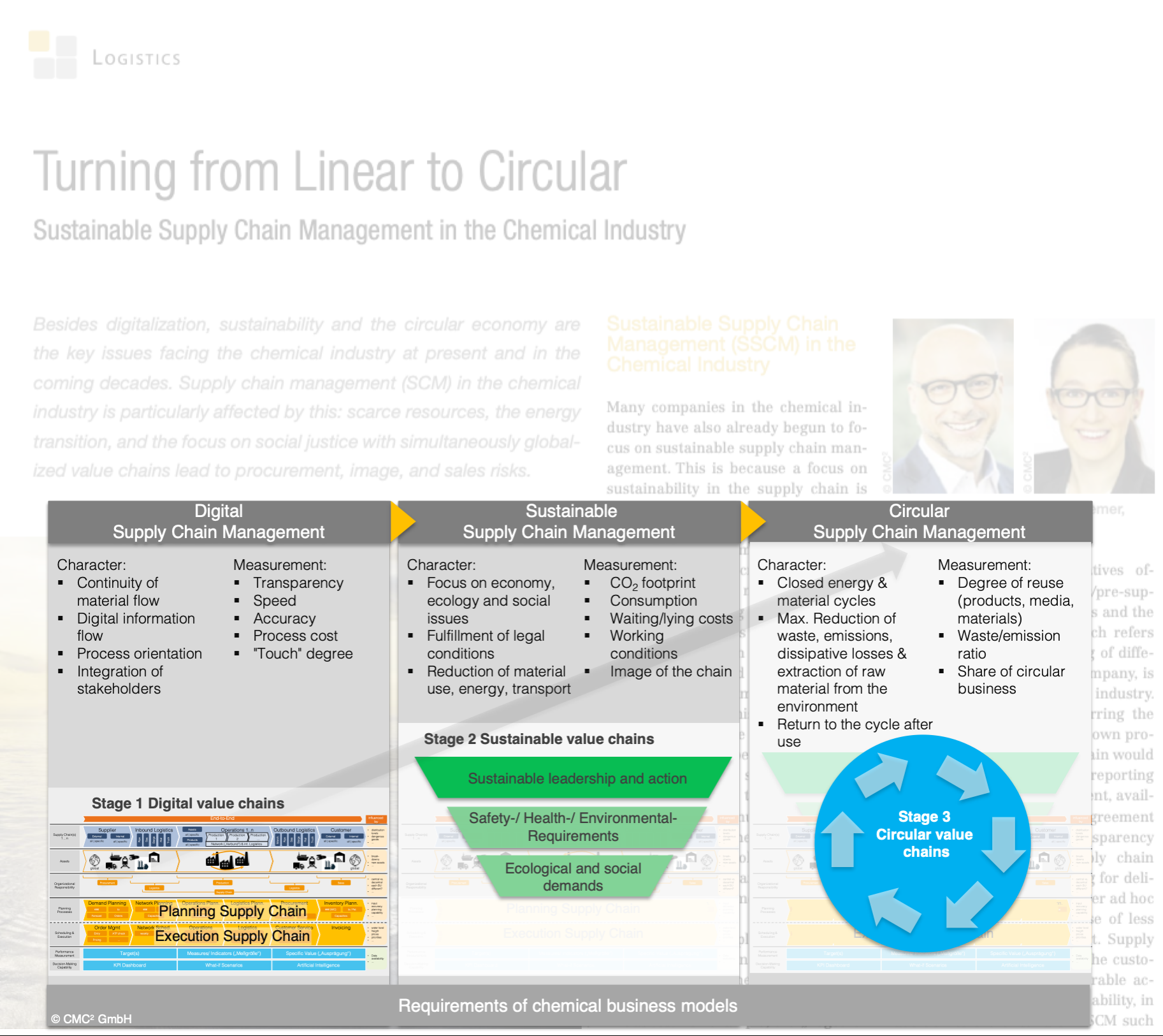 Besides digitalization, sustainability and the circular economy are the key issues facing the chemical industry at present and in the coming decades. Supply chain management (SCM) in the chemical industry is particularly affected by this: scarce resources, the energy transition, and the focus on social justice with simultaneously global­ized value chains lead to procurement, image, and sales risks.